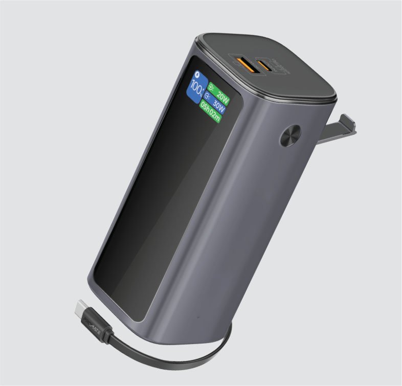 Litra Compact 130W Multi-Port Power Bank with Retractable USB-C Cable & TFT LCD Screen